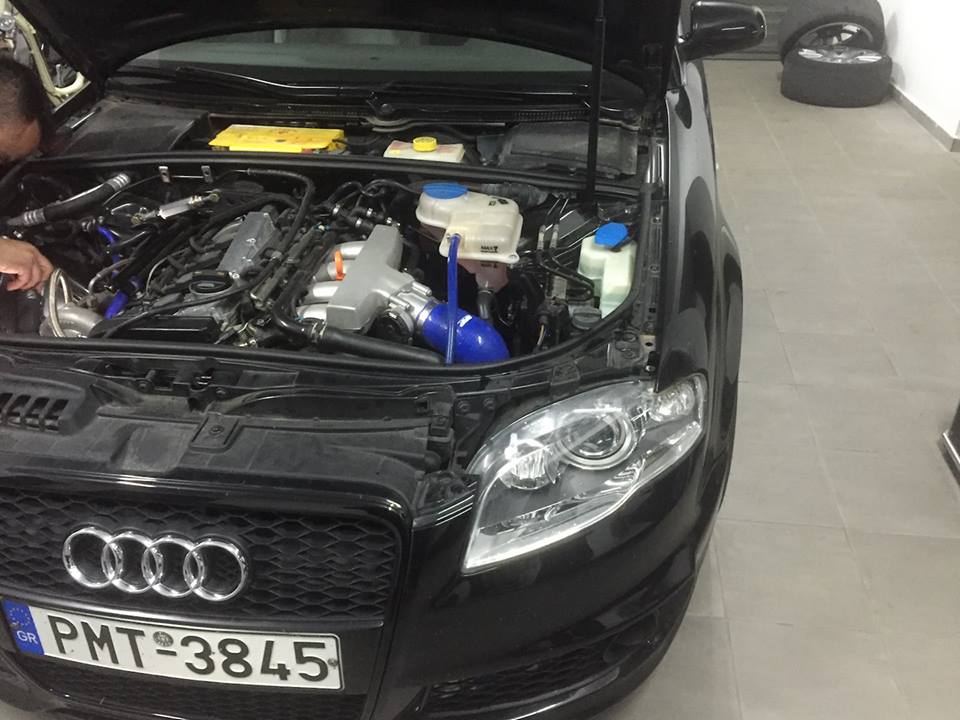 Και για να μην ανοιγω αλλο τοπικ αν και θα επρεπε αλλα ας μπει εδω σαν αρχειο στο πανεμορφο και γρηγορο οχι μονο στις ευθειες πλεον audακι μας. Απο καιρο μου ελεγε ο αδερφος μου θελω να το βαλουμε πιστα να δουμε τι κανει και εκει και για να ειμαι ειλικρινεις εγω τον εκανα πισω δυο τρεις φορες μεχρι που... ειχαμε ηδη παρει τετραδα ημισλικ yokohama advan A048 μεσαιας σκληροτητας και ηδη τα φορεσαμε στις 17αρες σε διαστασης εργοστασιακη 235/45/17. Την Πεμπτη μου σκαει το παραμυθι αν εχω να κανω τιποτα Κυριακη και μιας και δεν καταλαβα τι ηθελε να πει του λεω δεν εχω κατι ... ωραια μου λεει ετοιμασου για Σερρες παμε για track day. Λιγο η μικρη που φεραμε στον κοσμο πριν ενα μηνα λιγο η διαθεση μου να ξεφυγω και φυσικα ο αγαπημενος αδερφος μου που παντα θα ειμαι διπλα του σε οτι κανει και ηδη αρχισα ετοιμασιες. Ουσιαστικα θα ηταν η πρωτη γνωριμια με το αυτοκινητο σε συνθηκες πιστας οποτε δεν θελαμε να φτασουμε στα ακρα ουτε σε επιπεδο προετοιμασιας αλλα ουτε και ψυχολογικης πιεσης για να σπασουμε χρονομετρα. Οποτε το μονο πραγμα που καναμε ηταν να βγαλουμε τις 19αρες και να μπουν στην θεση τους οι 17αρες με τα ημισλικ και να σκληρηνουμε τις μπροστα αναρτησεις (δυστηχως οι πισω στην kw3 θελουν ξηλωμα για να σκληρηνουν και ειπαμε οτι θα παμε αναγνωριστικα). Τα ζαντολαστιχα μπηκαν στην Δραμα και πηγαμε με ενα σετ οδικως. Δεν ξηλωσαμε τιποτα απο το αυτοκινητο εσωτερικα/εξωτερικα και μαλιστα τα ζαντολαστιχα ειχαν αρκετα μεγαλυτερο βαρος απο τα 19 λογω ελαστικου και μονο. Το συνολο αυτοκινητου ζυγιστηκε στα 1550 χωρις οδηγο και βενζινη στο1/4. Αυτο που ειχαμε στον νου μας και θα τα αλλαζαμε αλλα δεν προλαβαμε ηταν τα εργοστασιακα τακακια απο τα φρενα του s4/s3 που φοραει διοτι ξεραμε οτι σιγουρα θα κουραστουν ευκολα και γρηγορα και ειμασταν ετοιμοι για τα χειροτερα με αυτα λογω του οτι η πιστα ειναι πολυ πιο απαιτητικη σε φρενα απο οτιδηποτε αλλο. Επισης εκτος απο σκληροτητα δεν πειραξαμε καμπερ καθολου παρα εμεινε η ρυθμιση οπως ηταν στον δρομο. Γενικα το αυτοκινητο πηγε οπως και εμεις χαλαρα και ανθρωπινα και ηταν "ολοκληρο". Την Κυριακη πραγματικα απο το πρωι η μερα ηταν τελεια με λιακαδα καθολου αερα και ισως τον καταλληλοτερο καιρο που εχω δει ποτε στις Σερρες για τετοιο event. To αυτοκινητο οπως παντα γυαλισμενο στην τριχα απο το αδερφακι μου που του αρεσει οπως και εμενα να συνδηαζονται ολα και ταχυτητα αλλα και εμφανιση/στυλ. Το event το διοργανωσε το mazda rx8 club και ηρθε ο αδερφος μου σε συνεννοηση αφου ειχε και αλλα αυτοκινητα εκτος mazda που θα ετρεχαν οποτε ημασταν οκ. Τα παιδια εκει μας υποδεχθηκαν σαν να μας ηξεραν χρονια και τα ατομα της πιστας επισης εξυπηρετικοι στο καθε τι που ζητησαμε. Πηραμε αριθμο σε αυτοκολλητο πηραμε σενσορα που στερεωσαμε στις γριλιες οπως ολοι και ξεκινησαμε αρκετα πρωι με χαμηλη θερμοκρασια ασφαλτου αναγνωριστικους γυρους. Ηδη στον δευτερο γυρο κατεβηκε στο 1.41 (μεχρι εδω ηταν η αναγνωριση....χαχαχα) ο Ρενος και βγηκε εξω να κουβεντιασουμε να δουμε πατηματα να μου πει και να του πω τι ειδα. Το πρωτο φυσικα που περιμεναμε και επιβεβαιωθηκε ηταν τα φρενα που δεν αντεχαν πολυ πιεση και επρεπε να τα πατας με πολυ δυναμη να πιασουν ειδικα στην μεγαλη ευθεια που το θηριο ανεβαινε στα 230 και επρεπε να πεσει στην Κ1 οποτε αναγκαστικα πηγαινες πιο λιγα χλμ και φρεναρες πιο μροστα. Στο δευτερο σετ οπου θα χωριζομασταν και βαση χρονων σε γκρουπακια εδειξε τα δοντια το α
