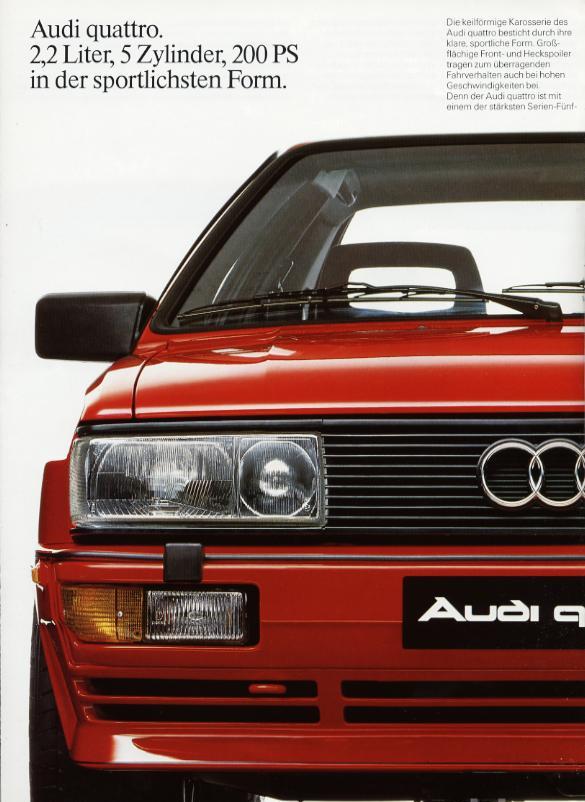KAPSALISS Posted March 1, 2007 Posted March 1, 2007 (edited) ΤΕΧΝΙΚΑ ΧΑΡΑΚΤΗΡΙΣΤΙΚΑ Όνομα: Audi Quattro 10V Κωδικός Μοντέλου: Typ85 Μορφή: Coupe Έτη Κατασκευής: 1980-1987 Πόρτες: 3 Θέσεις: 4 Καθαρό Βάρος: 1340 Ρεζερβουάρ (l): 93 Κωδικός Κινητήρα: WR (MB 1987-1989) Κύλινδροι: 5 Διάταξη : Σε Σειρά Βαλβίδες: 10 Χωρητικότητα (ccm): 2144 Ιπποι/rpm 200/5500 Ροπή/rpm 285/3500 Σχέση Συμπίεσης: 7.00 Κιλά/Ιππο: 6.70 Κιβώτιο : Μηχανικό Ταχύτητες: 5 Ελαστικά Εμπρός/Πίσω: 205/60 R15 0-100 kmph (s): 7.30 0-200 kmph (s): 40.00 Μέγιστη Ταχύτητα (kmph): 222 Κατασκευάστηκαν: 10402 Κομμάτια Edited March 1, 2007 by KAPSALISS